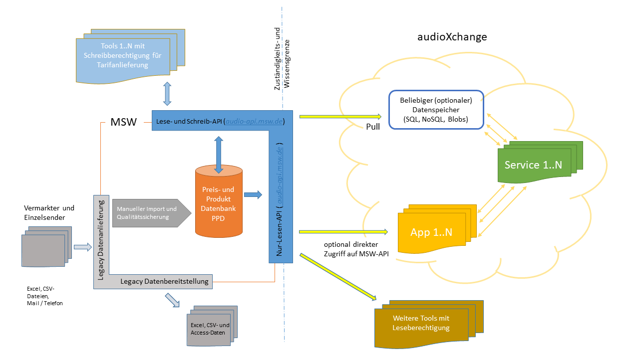 Soll wie im rechten Teil des obigen Bildes ein lokaler Datencache / -speicher mit den Inhalten der Preis- und Produktdatenbank gefüllt bzw. synchronisiert werden, läßt sich ein übliches Szenario mit nur zwei API Aufrufen realisieren: